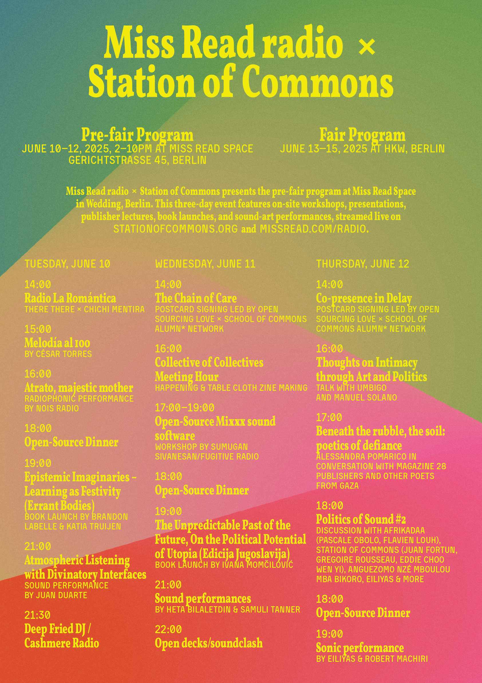 MISS READ RADIO x STATION OF COMMONS PRE-FAIR PROGRAM 10–12 June 2025